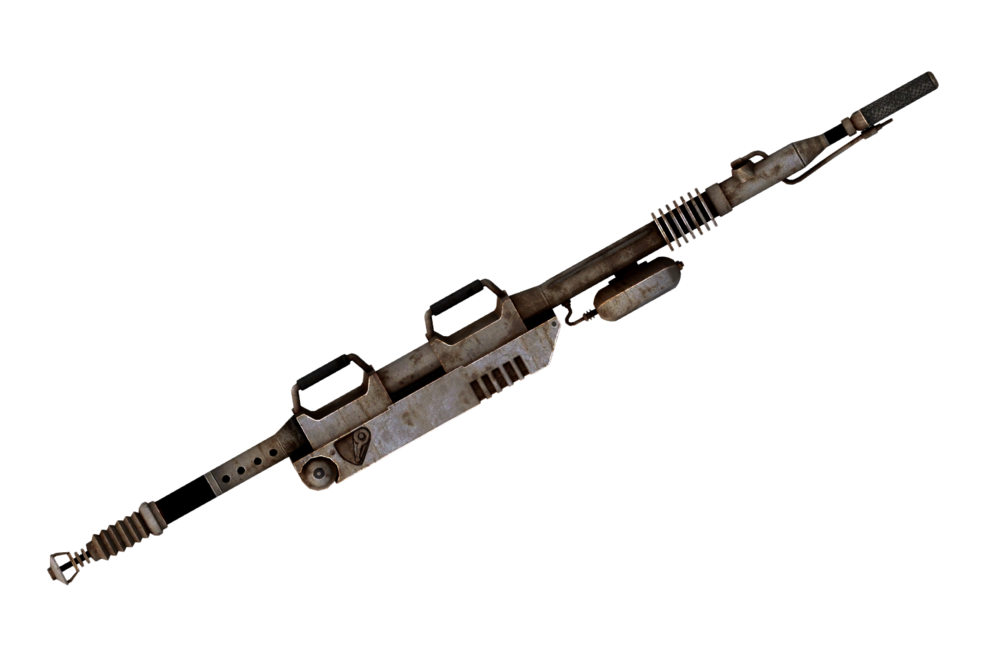The thermic lance is an industrial metalworking tool that heats and melts an iron tube packed with iron rods in the presence of pressurized oxygen, producing the high temperatures required for cutting through steel girders and other thick metal objects.[1] It is heavy, but deals considerable damage because its continuous penetrating action allows it to bypass the target's Damage Resistance and Damage Threshold. It is very durable, and also resists damage to itself if hit when used defensively (taking only 0.5% of normal durability damage). Due to its automatic attack-type, it will degrade at a faster rate than other weapons when used.