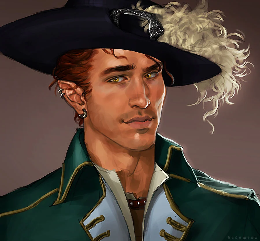 Rictavio is a colorful, flamboyant, and entertaining half-elf bard staying at the Blue Water Inn. He rolls his r’s, speaks with constant delight, and has a never-ending stream of amusing and lighthearted anecdotes. He regales tavern patrons with stories so outrageous as to be hardly believable, yet he asserts they are true indeed. Rictavio claims to be a carnival ringmaster from a distant land. When he arrived, he was accompanied by a monkey named Piccolo. The monkey wasn't welcome at the inn, so Rictavio gave it to the local Toymaker. He also claimed to have some ferocious beast sure to fright and delight an audience.