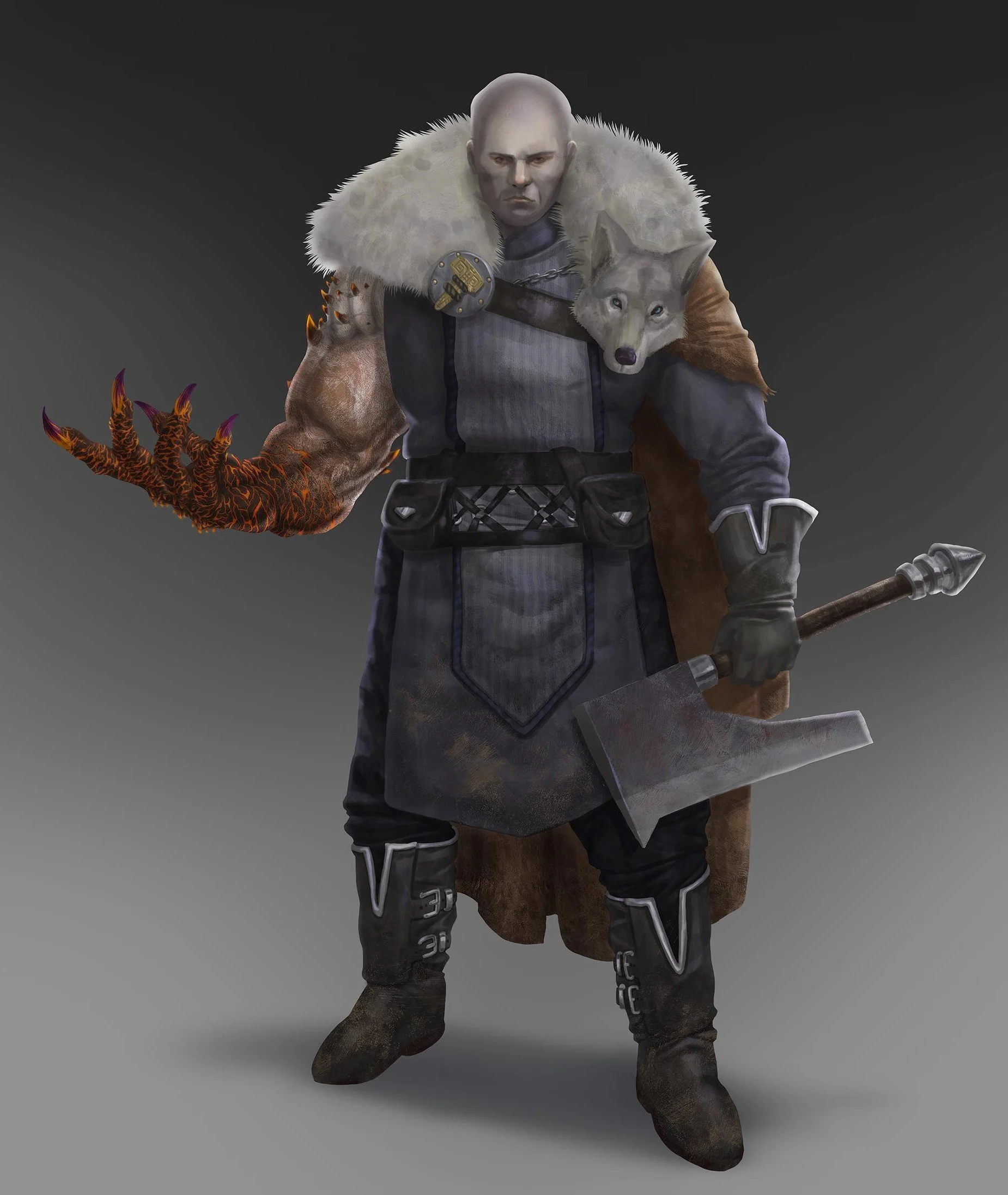 Large and intimidating, Izek is the captain of the guard and leads Vallaki town militia. His right hand seems to be grotesquely monstrous, with a lava-like texture and large clawed nails.