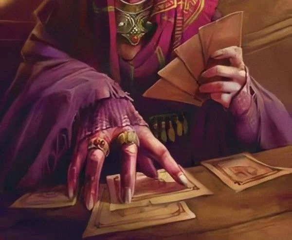 Madam Eva drew the following cards for the party during a Tarokka card reading at Tser Pool Encampment.