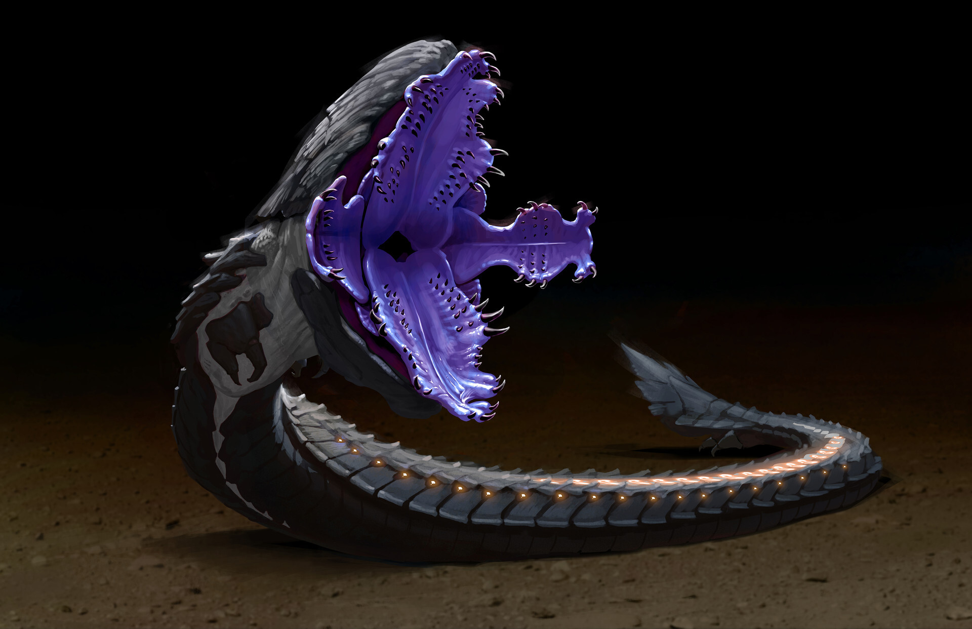 Ils aperçoivent ce serpent colossal qui, par moment, en ouvre sa gueule en forme de fleur. Cette gueule qui doit faire presque un quart de sa taille et est pleine de dents. Le serpent ne les a pas encore vues et les Garous prennent position. Taynara se transforme en humaine pour chuchoter quelque chose à l’oreille de Ludwig et le temps qu’il acquiesce d’un signe de la tête que Vicktor est déjà partie pour charger la créature. Pris de stupeur, Ludwig lance son sort et donne le signal de l’assaut ; mais Vicktor est déjà au contact de la créature à qui il a asséné un puissant coup de griffe. Dans le champ de vision de Ludwig, Vicktor est pris dans les effets de son fétiche et la créature en profite pour contre-attaquer et lui dévore entièrement le bras gauche avant qu’il tombe inconscient au sol. Artyom se précipite vers Vicktor pour le protéger pendant que Ratiche saute sur la créature toutes griffes dehors. Ratiches dans une rage folle lacère la créature plusieurs fois avant que celle-ci ne s’écroule et commence à brûler de l’intérieur. Ludwig repasse en homidé et utilise un don pour soigner Vicktor toujours inconscient.