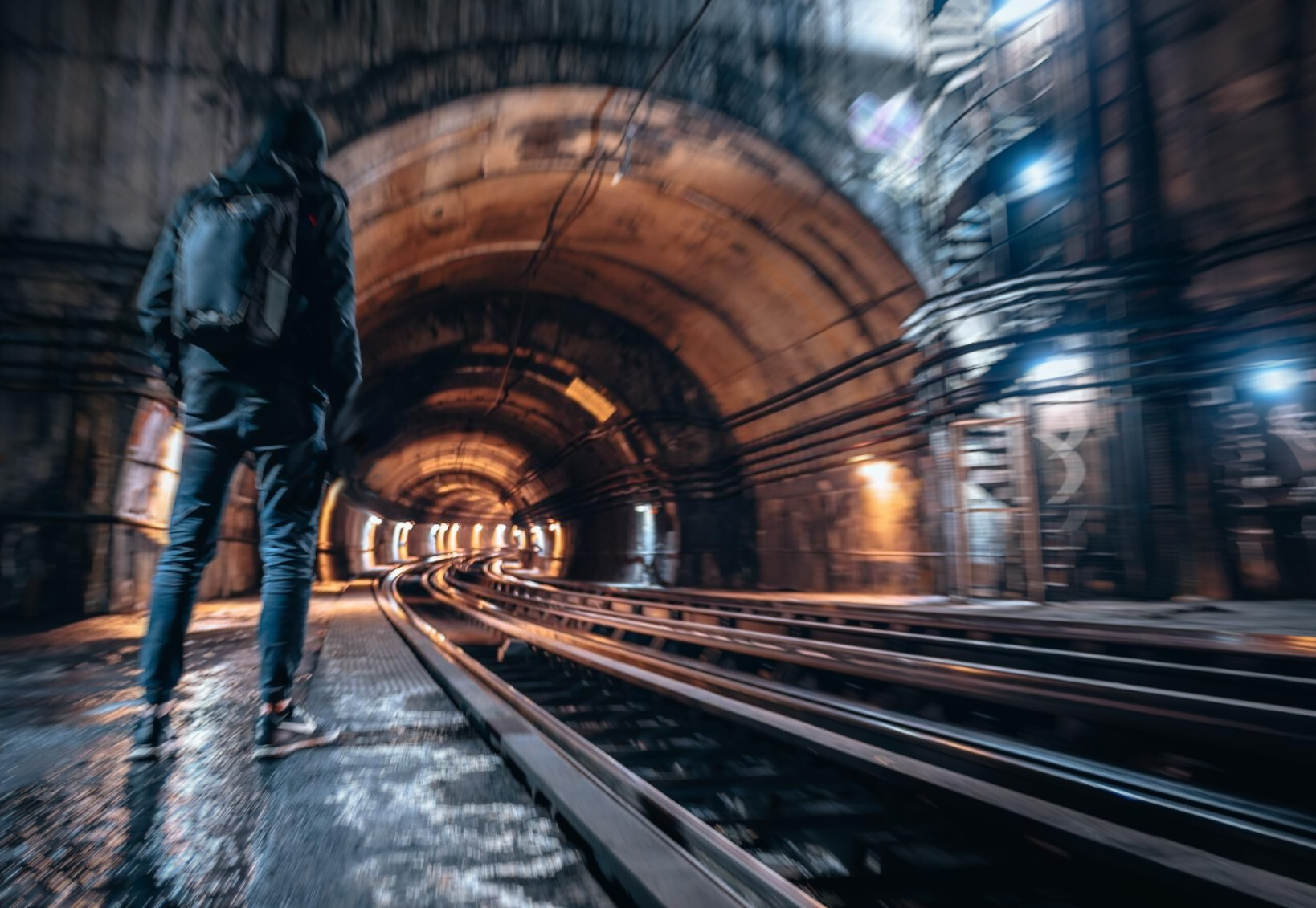 Le groupe décale en Penumbra le temps de franchir la barricade et se retrouve dans cette station de métro vétuste tout juste éclairée par les lampes des issus de secours. Main de Gaïa regarde sa montre au poignet, puis inspecte sa montre gousset en la tapotant légèrement dans le creux de sa main, puis fini par sortir un petit réveil à oreilles de la poche intérieure de sa surchemise.