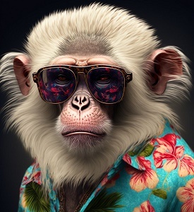 Nous sortîmes de la grotte et avançâmes sous le ciel étoilé du désert cherchant d’où pouvait provenir ces paroles quand nous vîmes un singe couleur crème assis sur un rocher portant des lunettes de soleil et une chemise hawaïenne.