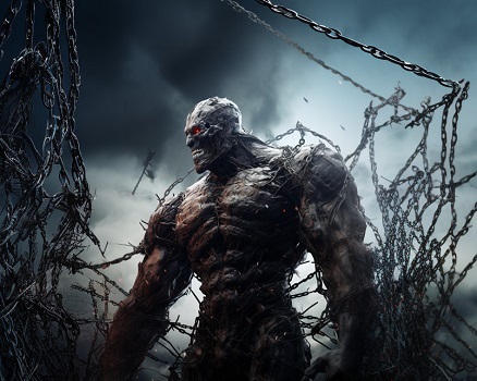 Soudain la silhouette dans sa robe de bure se mit à grandir dangereusement avec des bruits de craquements d’os et de déchirements de chair, avant de se retourner vers Freya, jetant sa robe de bure sur le côté.