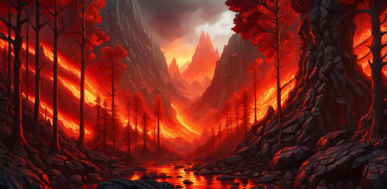 Après une rapide concertation, les membres du pacte finissent par libérer Aedonektus pour qu’il leur montre le chemin. A l’instar de leur passage entre le désert et la montagne, les changements d’environnement sont à chaque fois brutaux, et seul Aedonektus semble arriver à garder un cap cohérent dans ce monde qui semble paradoxalement être un chaos organisé. Passant des hautes montagnes aux marécages sanglants, puis de la forêt hantée aux reliefs volcaniques les membres du pacte franchissent difficilement chaque environnement pour enfin arriver devant un portail massif en pierre qui semble fonctionner comme un pont de lune mais qui est en perpétuel mouvement. Alors qu’ils s’approchent de celui-ci, un grognement roque se fait entendre puis apparait devant eux un immense chien fait de lave.