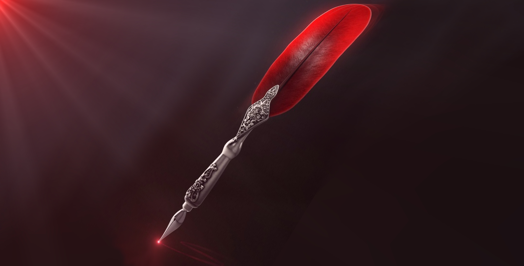 Mais la jeune femme tient dans sa main une plume d’écriture qu’elle serre fort dans son poing, puis, elle la plante dans sa propre cuisse en annonçant : « La mort serais trop douce pour vous ! »
