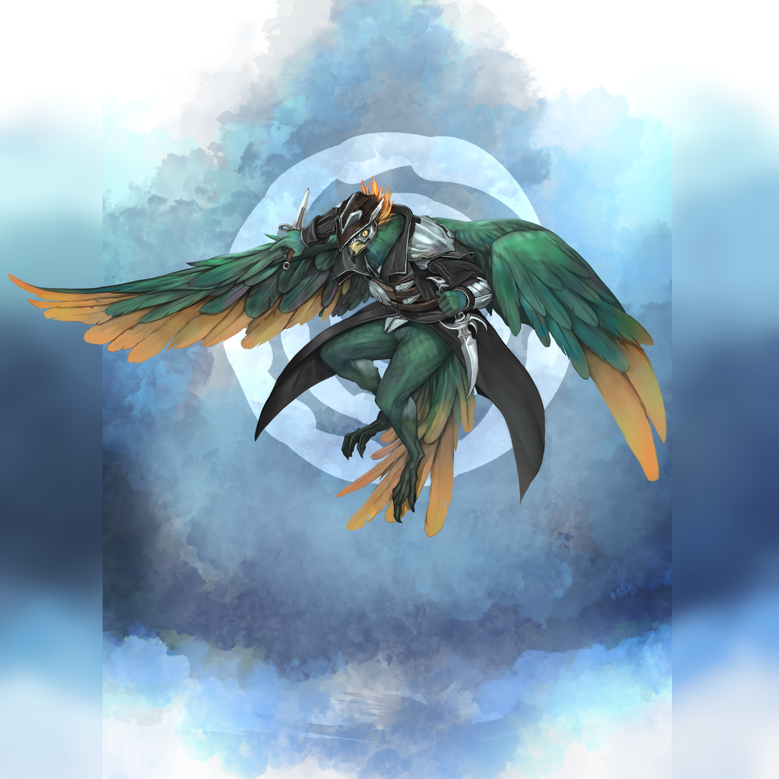 A small Aarakocra male who was raised in Capital.