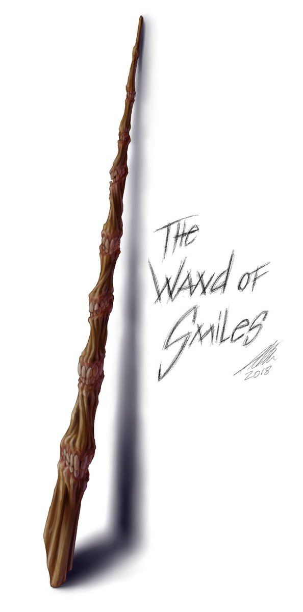 This wand has 3 charges. While holding it, you can use an action to expend 1 of its charges and target a humanoid you can see within 30 feet of you. The target must succeed on a DC 10 Charisma saving throw or be forced to smile for 1 minute.