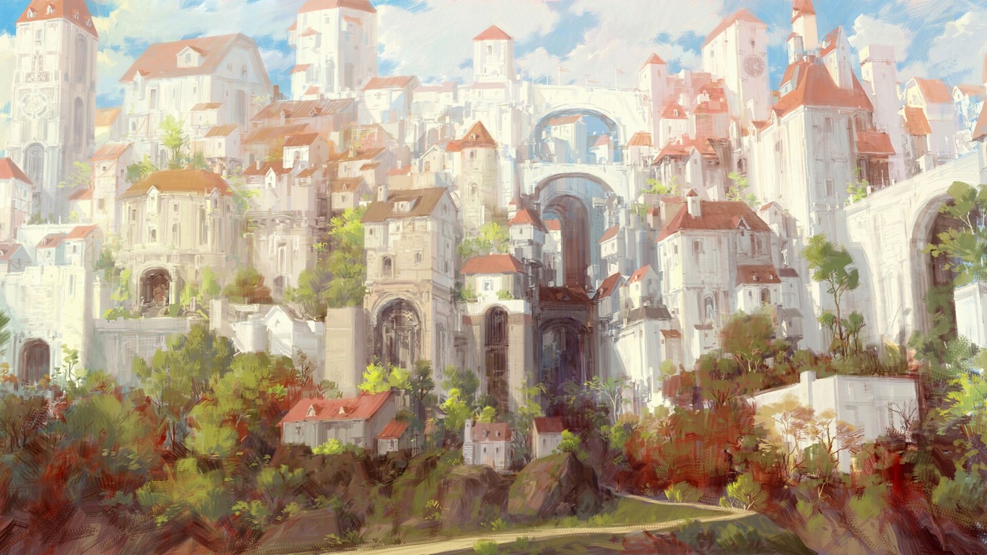 Atop the cliffs, the Shaletop District can be found. Resorts, restaurants, temples, and the residences of the merchant kings and queens of Evershoal can be found here. The land of Shaletop is prized for the expansive, beautiful views of Auksnest Bay and all of Evershoal below with only the pleasant sea breeze perfuming the air.