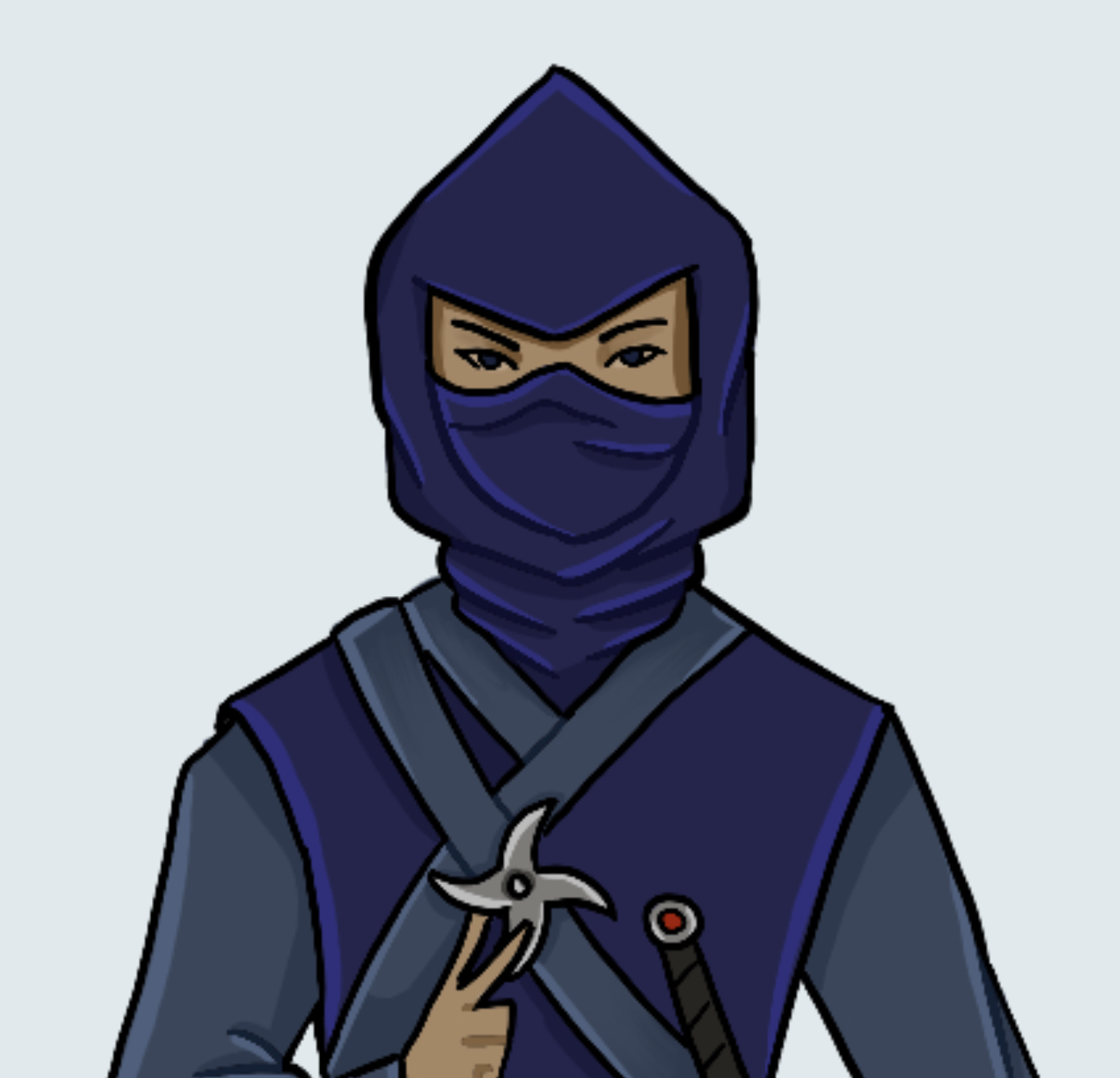 Mudgruff McBumble was roughly 3 feet tall. He wore a blue ninja outfit with a mask. He never took off his mask.