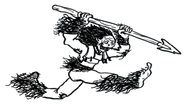 The party descended down to the valley floor while the creatures postured, high-fived and generally celebrated scaring off the adventurers. The characters were just biding their time and, with their targets out in view and vulnerable to ranged fire, let fly with slings and spears. They were joined by another human charging out from the woods. Several of the little monsters dropped dead and the rest fled back into the cave.