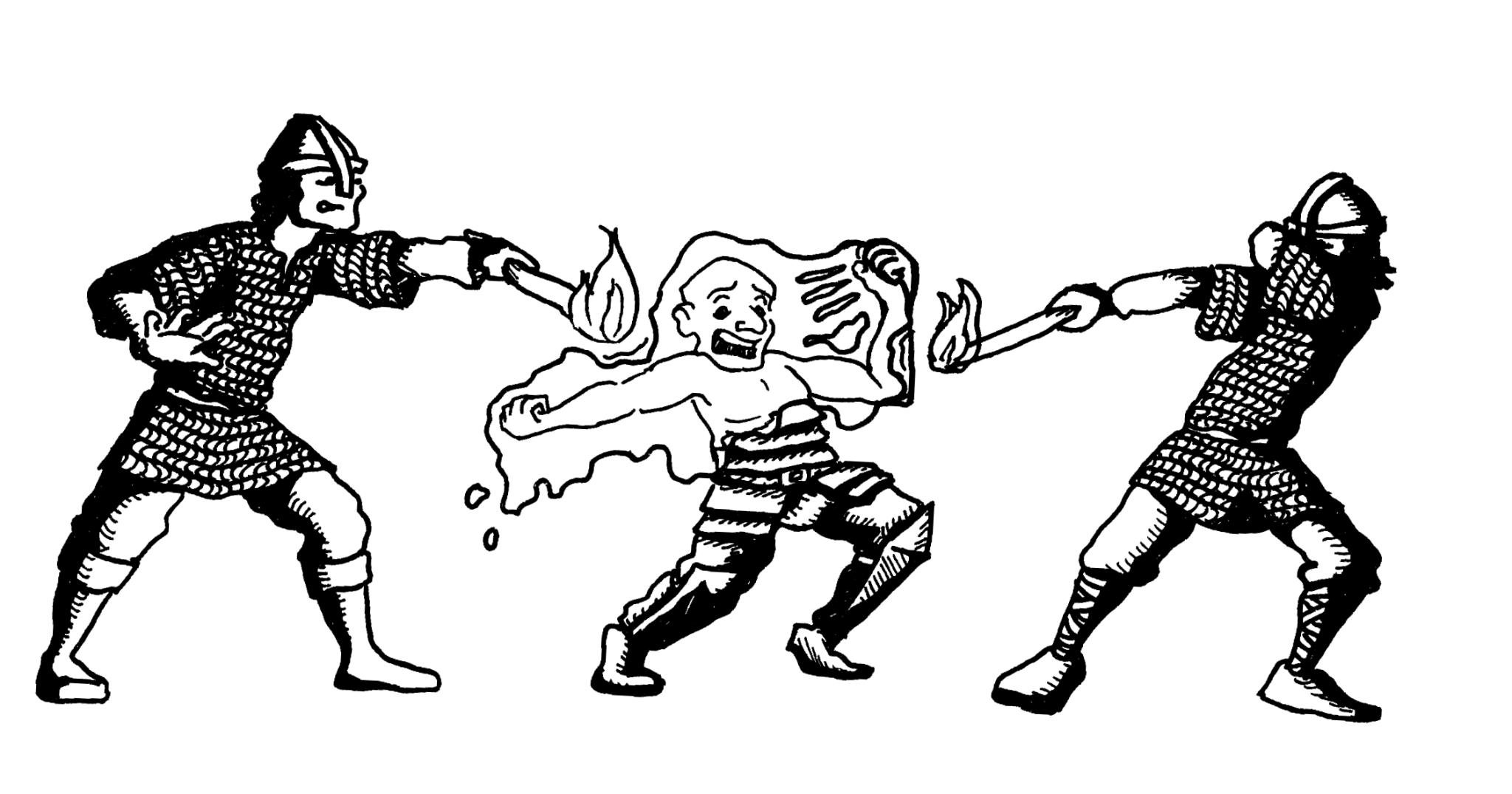 Once again, Rarder’s instincts kicked and he leapt back, while the comrade at his side reacted too slowly. Mandras, just barely growing back a stubble to replace his fire-singed beard and locks, was struck by tumbling goo, and it immediately started eating through his armour. Another dollop of slime struck the floor where Rarder had been. Noting the greenish tinge to the substance, the party ushered the struggling dwarf back into the sunlight where they lit torches and tried burning it away, while others flung burning oil flasks upon the ground mass in the doorway.