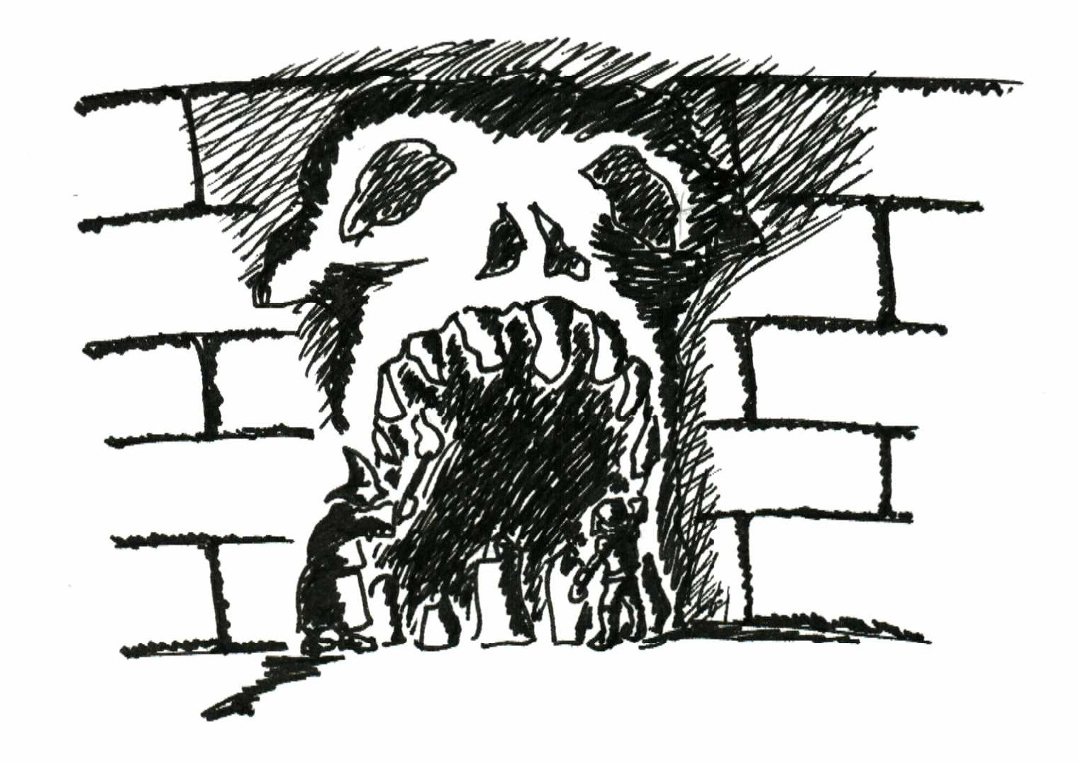 Using Koko's map, they traced their way back to the skull door, and Konrad the Unwise boldly stepped into the maw-way. The party held their breath but, when nothing happened to the cleric, boldly followed him. The corridor had a lot of doors leading off to the side but no obviously grander door than the rest. Convinced there must be an important burial room somewhere, the adventurers explored the walls and found another secret door at the end of the corridor. Beyond it lay another corridor leading to a bricked up doorway. Wary of the hidden elements they'd come across so far, the party advanced very cautiously, and Alfredward noticed yet another secret door leading off to the side.