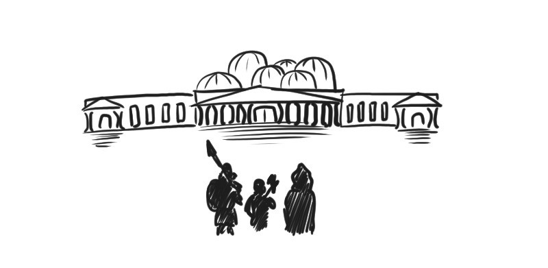 The first room inside was suitably enormous, similarly pristine, furnished as some sort of waiting room. Warily avoiding the open space in the middle, the adventurers pushed through a set of doors into a corridor lined with busts of figures from an archaic era of fashion. A door leading off to the side led to a room with an apparently impromptu boxing ring of some kind with a fancily dressed gentleman enthusiastically scrawling something down to the side, flanked by several figures. The party backed out before anyone noticed them.