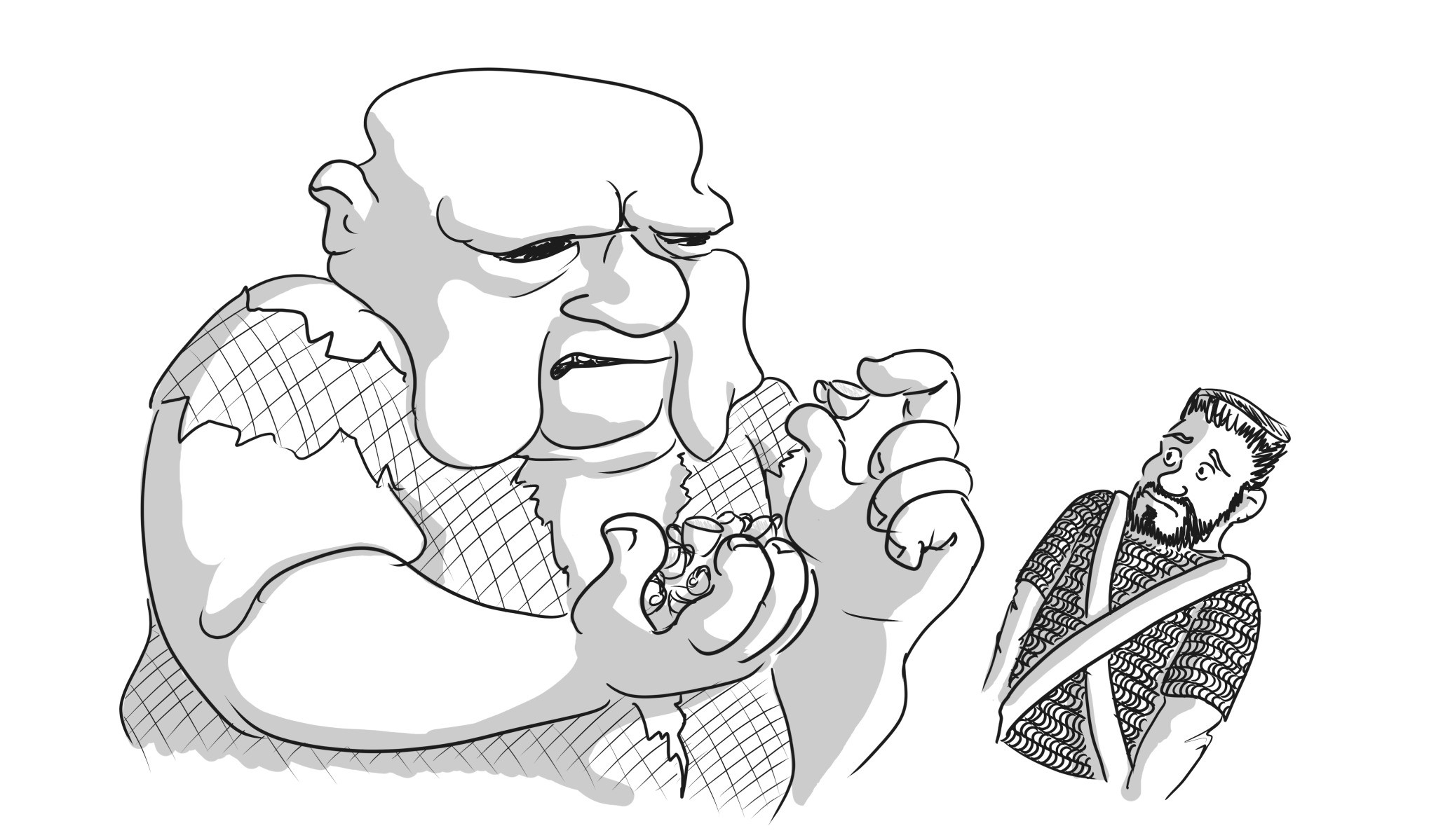 Unsure whether the ogre was an impersonator or possibly a cursed family member, Konrad unsheathed Conciencia to see if the sentient sword could detect any stronger magical presence in the room, but the ogre interpreted the drawn weapon as an aggressive act and attacked. Together the adventurers brought it down, but decided to leave the scene of the crime quickly.