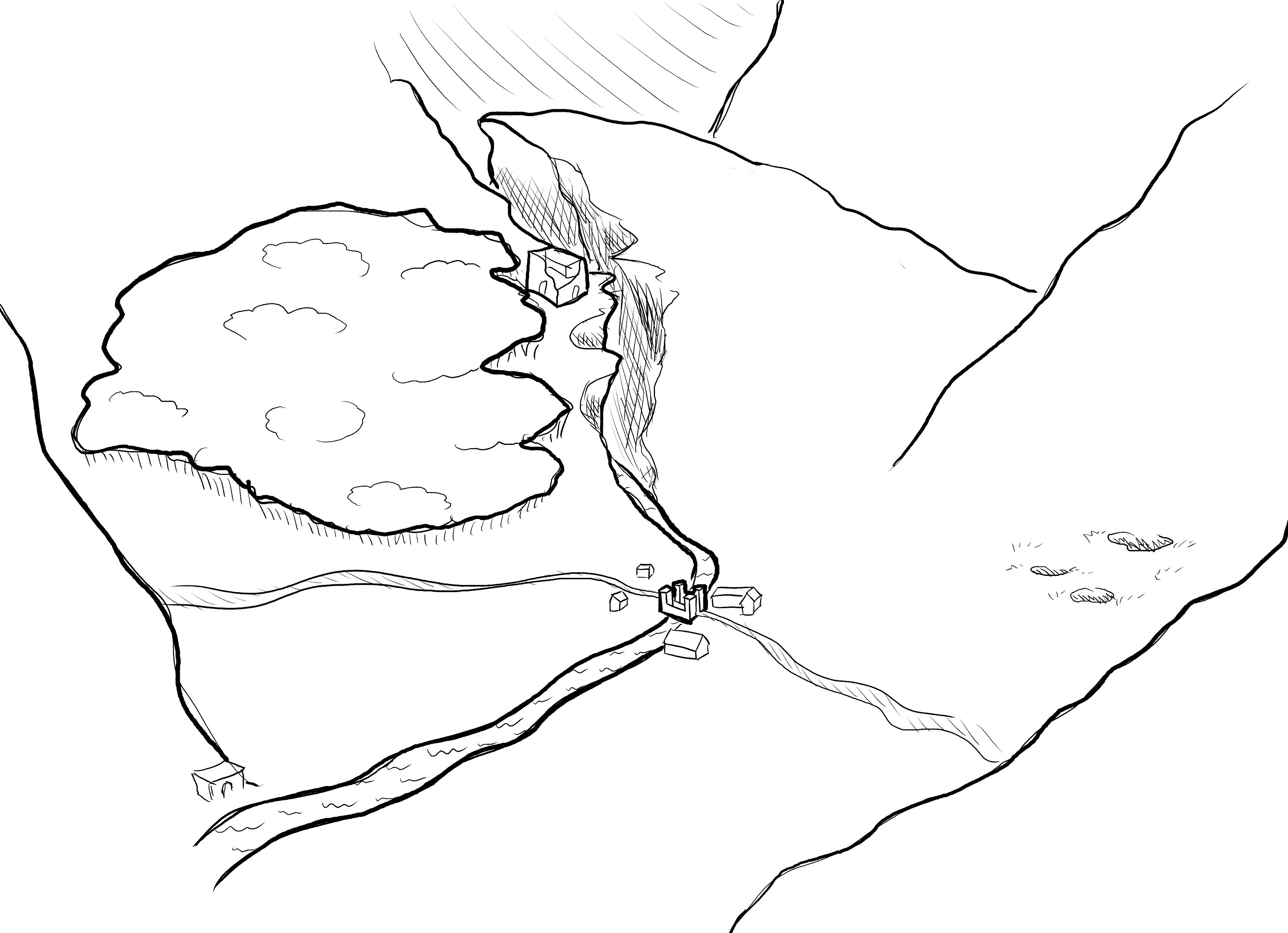 While several of their party recuperated from their (forunately mild) injuries, Firstleaf spent a few days exploring the nearby area and documenting the rough layout, noting a few interesting features which stood out and emphasing to his companions that scale was merely a trap for human bean counters.