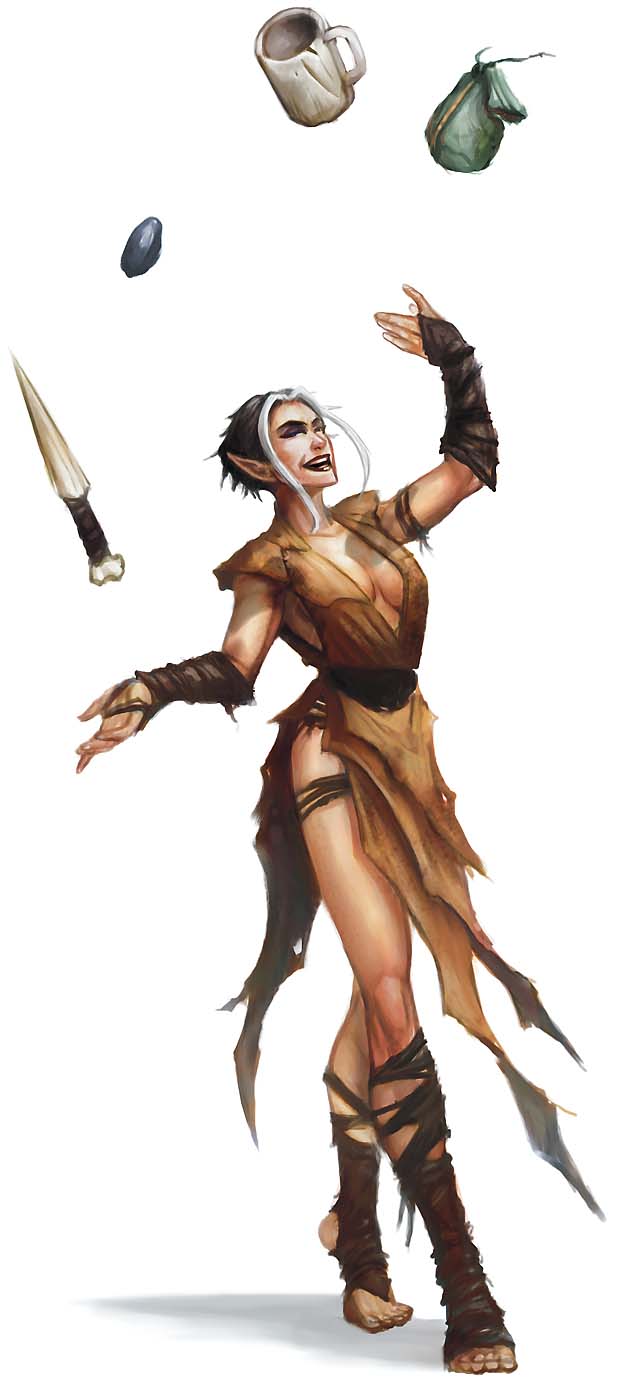 Jossi is an elf street performer seen all over the Caravan District, demonstrating impressive juggling skills for coin. Her performance involves singing, selecting volunteers from the crowd to participate in her stunts, and other tricks designed to delight.