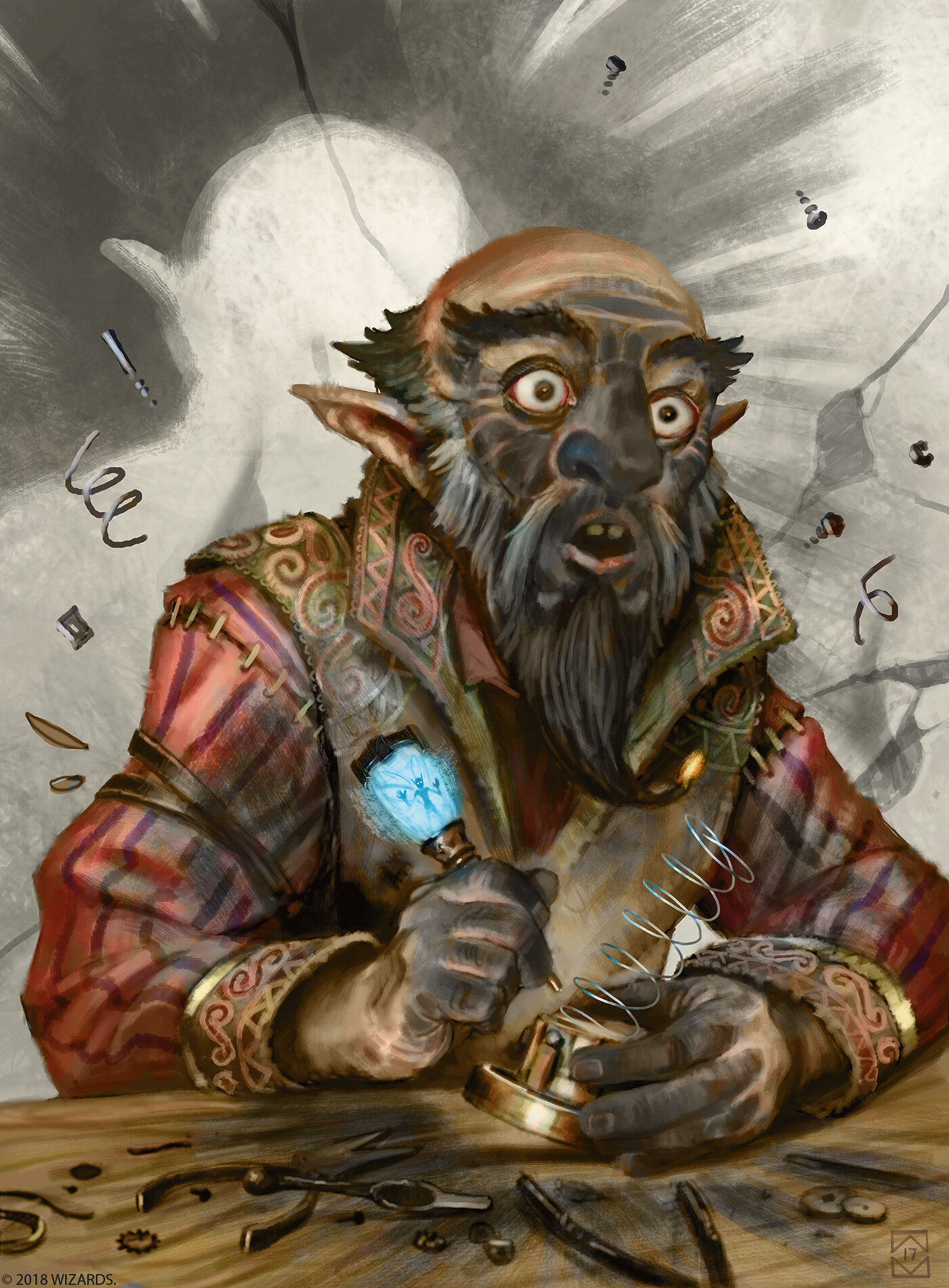 • Inventore. Uno gnomo delle rocce ha competenza negli strumenti da artigiano (strumenti da inventore). Utilizzando questi strumenti, uno gnomo delle rocce può dedicare un'ora e una quantità di materiali pari a un valore di 10 mo per costruire un congegno meccanico Minuscolo (CA 5, 1 pf). Il congegno cessa di funzionare dopo 24 ore (a meno che il personaggio non spenda 1 ora a ripararlo per mantenerlo in funzione) o quando lo gnomo delle rocce usa un'azione per smantellarlo (nel qual caso può recuperare i materiali utilizzati per crearlo). Non è possibile avere più di tre congegni attivi allo stesso tempo. Quando uno gnomo delle rocce decide di creare un congegno, deve sceglierne uno tra le opzioni seguenti.