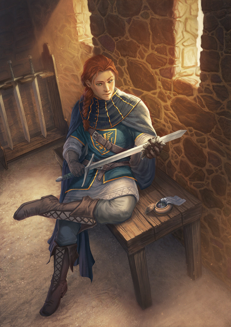 Al momento di creare il proprio guerriero, un giocatore dovrebbe pensare a due elementi relativi al background del suo personaggio dove ha ricevuto il suo addestramento marziale e cosa lo distingue dai comuni combattenti attorno a lui? Era particolarmente spietato? Ha ottenuto un aiuto particolare da un mentore grazie alla sua straordinaria dedizione? Cosa lo ha spinto a cercare questo addestramento? Cosa lo ha spinto a cercare questo addestramento? Una minaccia alla sua terra natia, il desiderio di vendicarsi o la necessità di dimostrare il suo valore sono tutti fattori plausibili. Un guerriero può avere ricevuto un addestramento formale nell'esercito di un nobile o in una milizia locale. Forse si è addestrato presso un'accademia di guerra, studiando strategie, tattiche e storia militare. O forse si è fatto da solo, senza beneficiare di un addestramento raffinato, ma facendo buon uso delle sue esperienze. Ha impugnato la spada per sfuggire ai limiti di una vita da contadino, oppure porta avanti un'orgogliosa tradizione familiare? Dove si è procurato le sue armi e la sua armatura? Gli sono state fornite dall'esercito, sono cimeli di famiglia o forse le ha acquistate tirando la cinghia e usando i risparmi di molti anni? Le sue armi ora sono le sue proprietà più preziose... le uniche cose che separano il guerriero dall'abbraccio della morte.