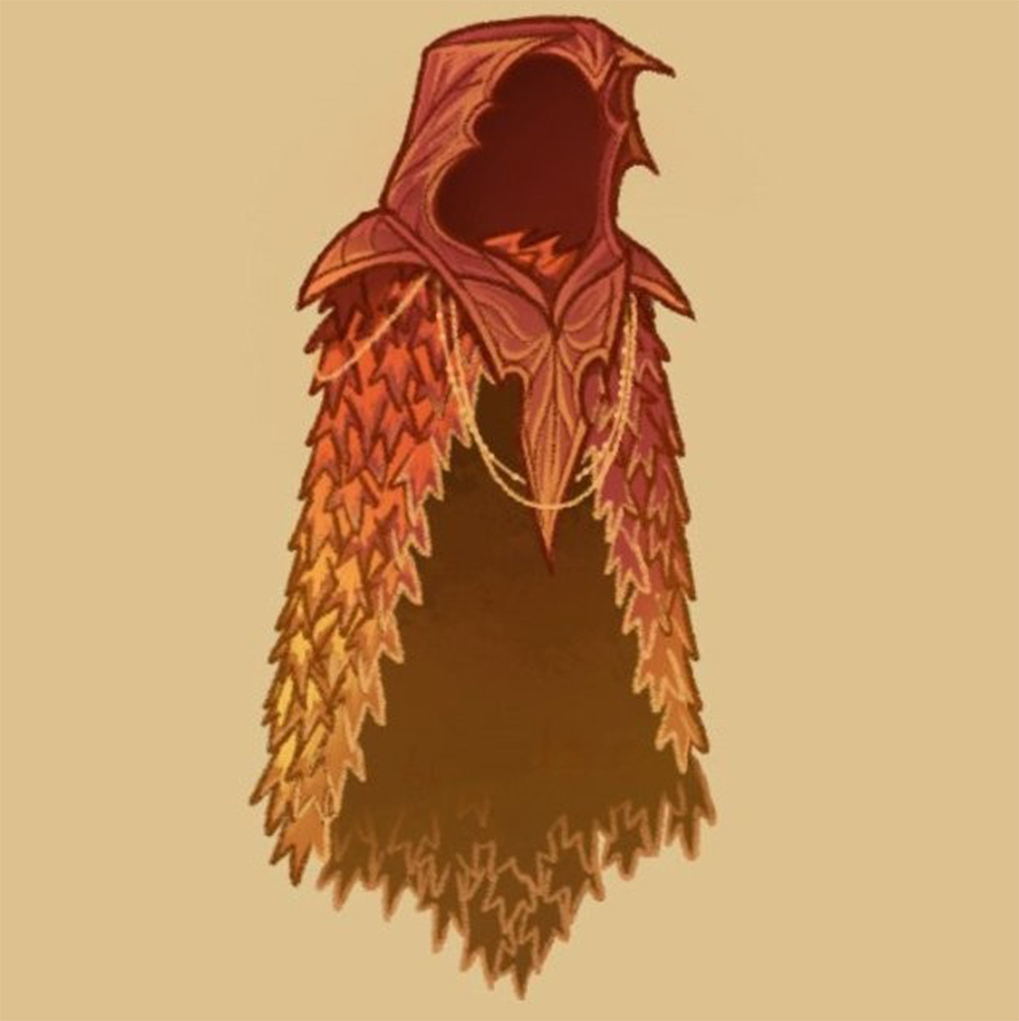 Questo mantello sembra composto dalla maggior parte da foglie imbrunite dall'Autunno. Abiti del genere vengono indossati molto dagli Elfi dei Boschi.