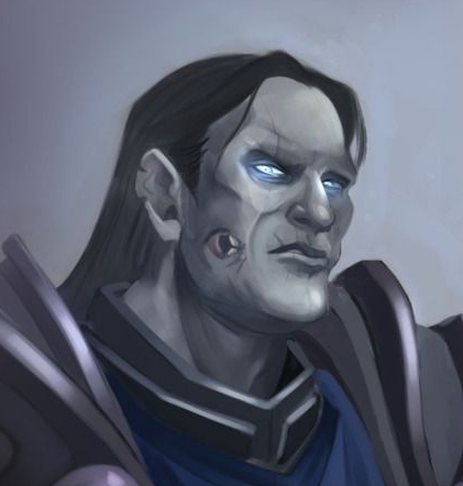 For a forsaken, Andreas has a surprisingly stocky figure. His eyes are sunken-in and shining of a bright, blue light, and the back of his head has been fixed with bolts that now keep it together, though this is often hidden under both what remains of his hair and a pointed, blue hat -- the latter mainly when he is not in his quarters or his study.