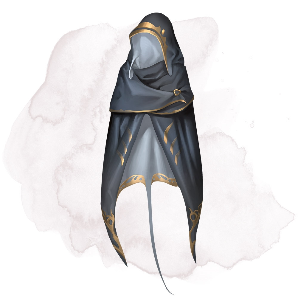 breathe underwater, and you have a swimming speed of 12m. Pulling the hood up or down requires an action.
