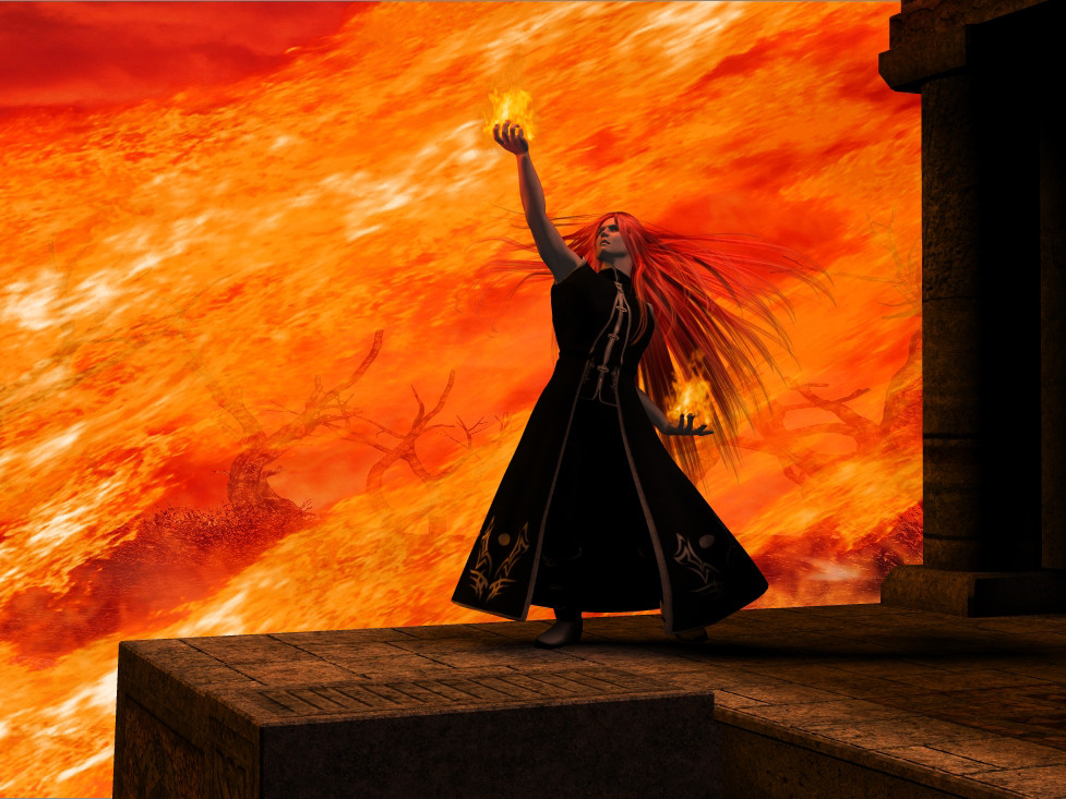 A storm made up of sheets of roaring flame appears in a location you choose within range. The area of the storm consists of up to ten 2m cubes, which you can arrange as you wish. Each cube must have at least one face adjacent to the face of another cube. Each creature in the area must make a Dexterity saving throw. It takes 7d10 fire damage on a failed save, or half as much damage on a successful one.