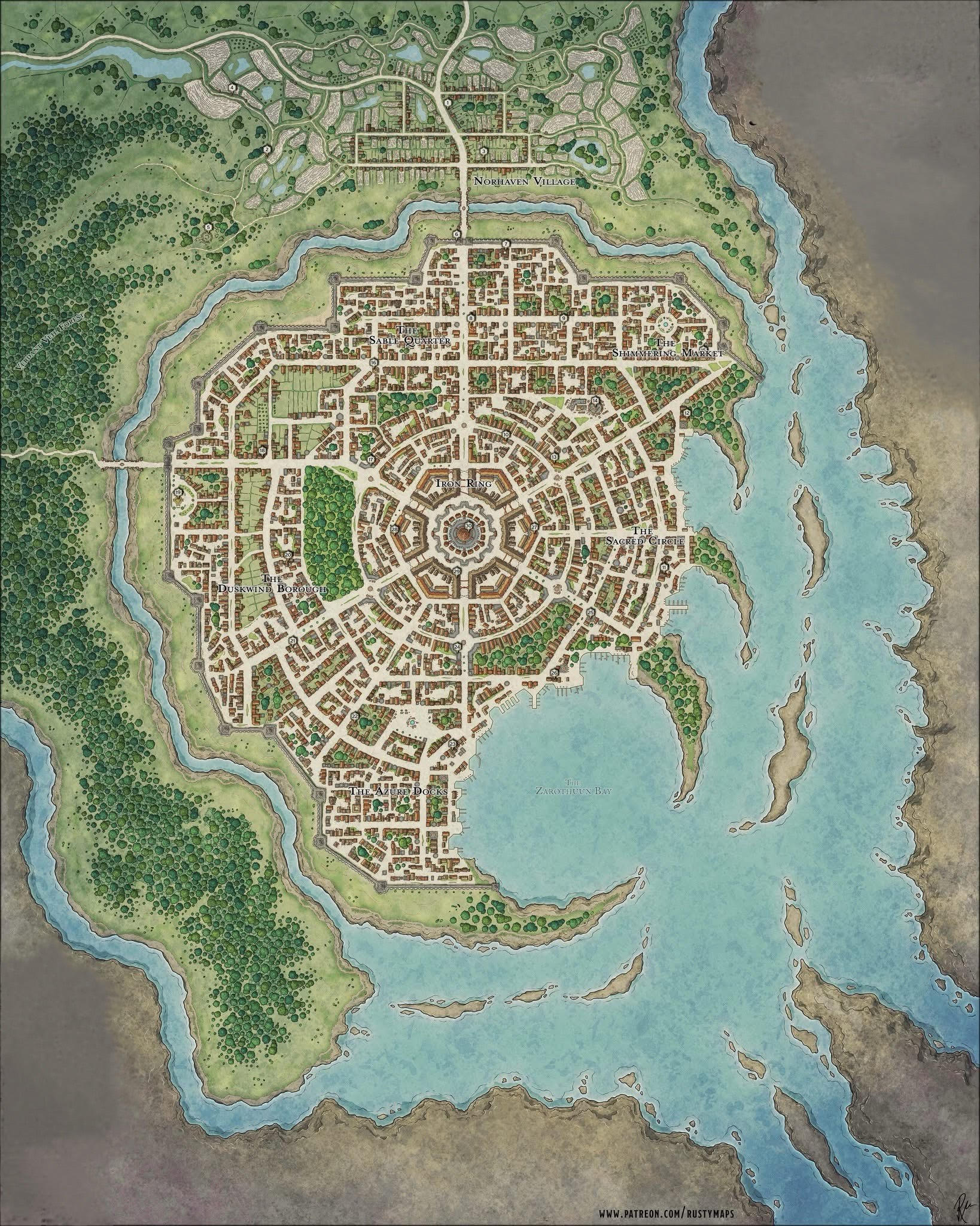 Bawaaba is the single city in the entire continent of Great Mbo that The God-King of Mbo has declared legally accessible to foreigners. Located on an until recently inhabited desert island at the mouth of Unknown, it has grown over the last hundred years from a small village of straw huts into a major trade center, rivaling Haven Towne in riches.
