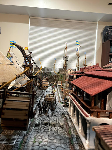 This quarter mile long street parallels the stone docks and mostly consists of warehouses, inns, taverns, cat houses and the like. The two most notorious of which (Bella Bell’s and Sally Brown’s) bookend the street. The Rumbala is always bustling even into the late hours, the taverns rarely close. Sailors, merchants, pirates and wanderers from all over the Isles and beyond can be found roaming the street day and night, the smell of rum, the salt of the sea, and the spices of food mix with less savory things to produce a potpourri of exotic odors.