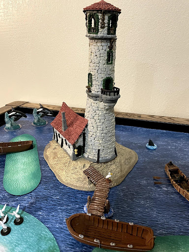 This tall and continually manned lighthouse guards the approach to Skull River Bay. In conjunction with it’s sister, the River House it marks the narrow channel that is the only safe way to approach the harbor and river.