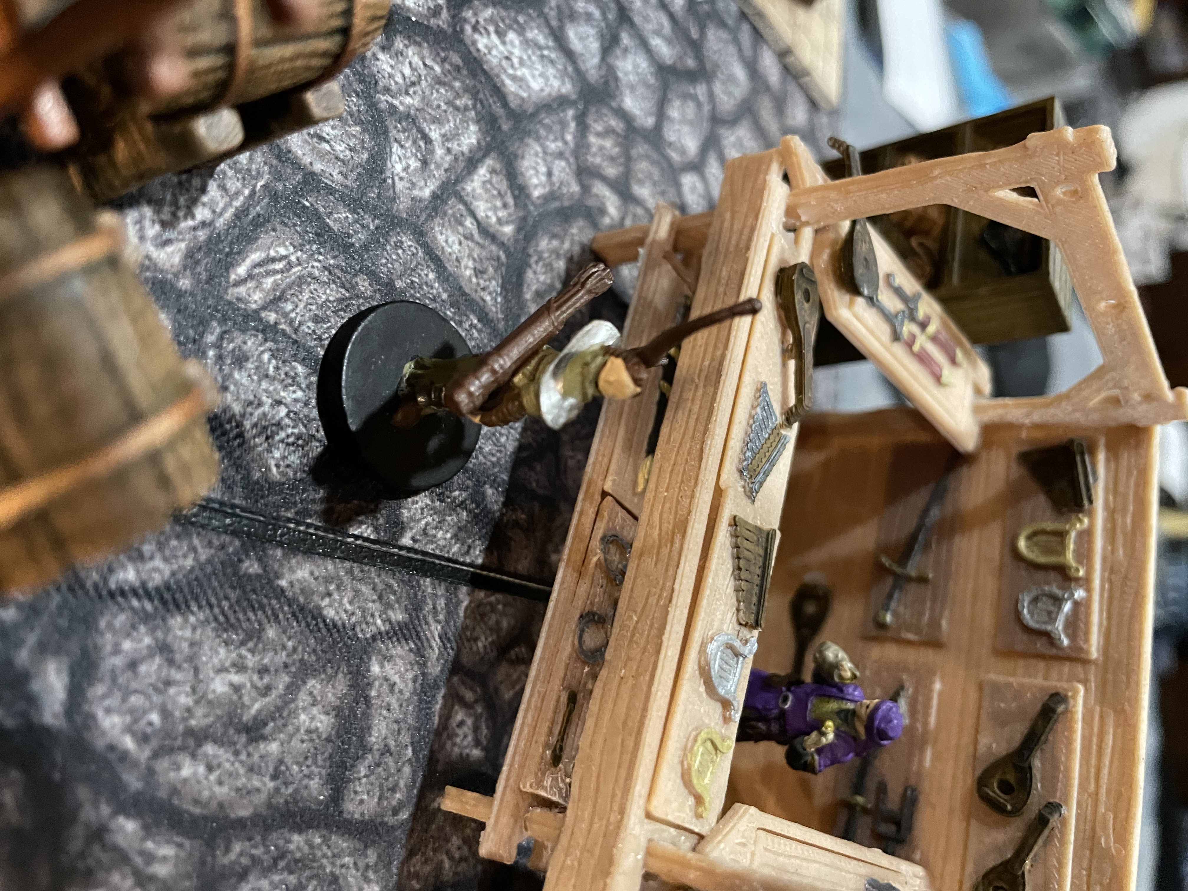 He has the following magical items in addition to an assortment of normal musical instruments