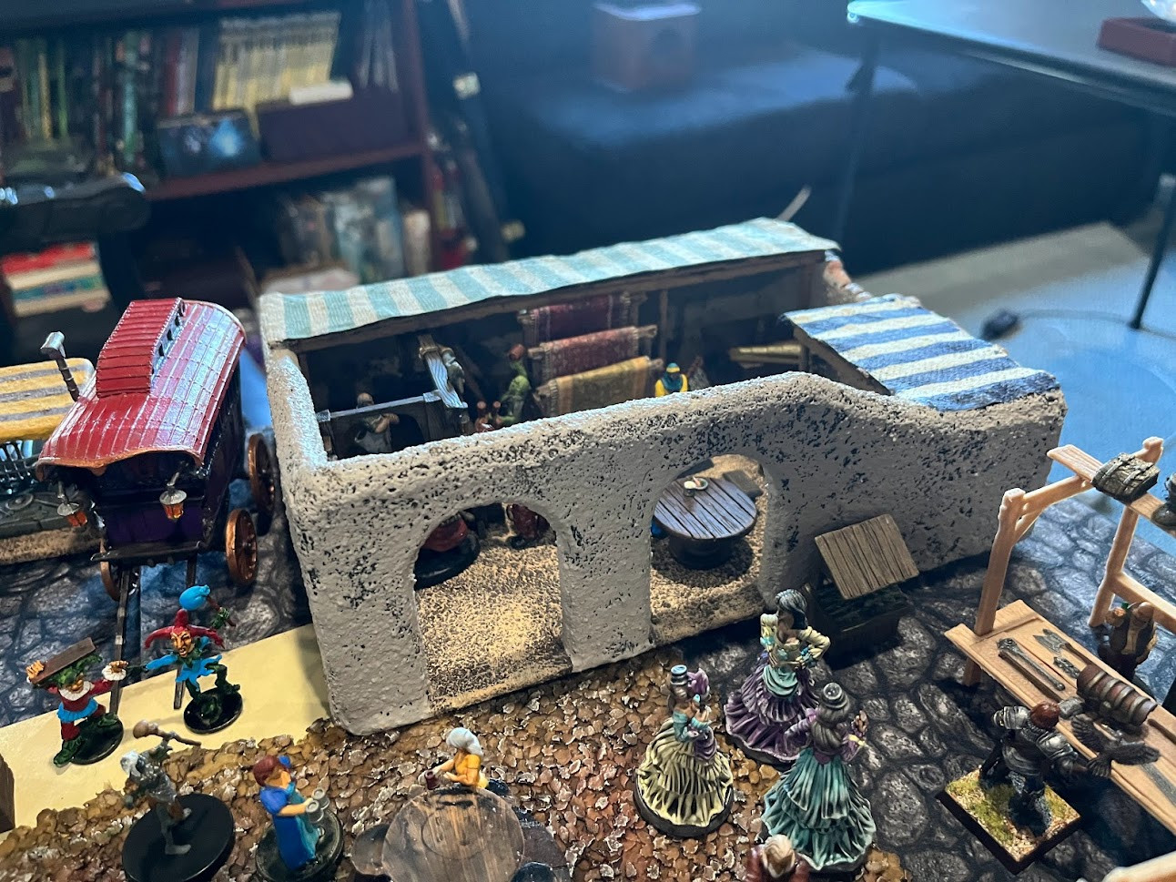The Souk is a large enclosed warren of stalls in the southwestern corner of the The Pirate Market . While only a few hundred yards wide, the warren is filled with narrow twisting corridors, and surprisingly confusing.