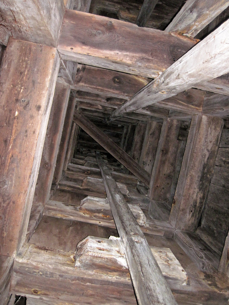 This large shaft is nearly two meters in diameter. It is mostly used for air circulation, and has a huge fan that pulls air up out of the mine. It also plays a roll in draining the mine of water, hosting a large pump. The Back Shaft is powered from New - The Engine Room, to which it is connected via a set of belts.