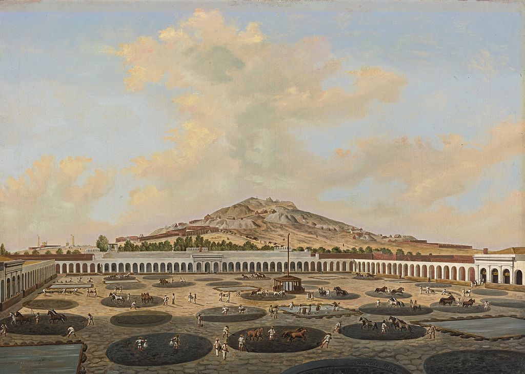Immediately surrounding the buildings are various engines, furnaces and other contraptions. Some of the engines are large, some three stories tall, covered in pipes and metal tubing, others appear to be large ovens made of iron. Some sport windvanes similar to what you would see on windmills, complete with huge millstones.
