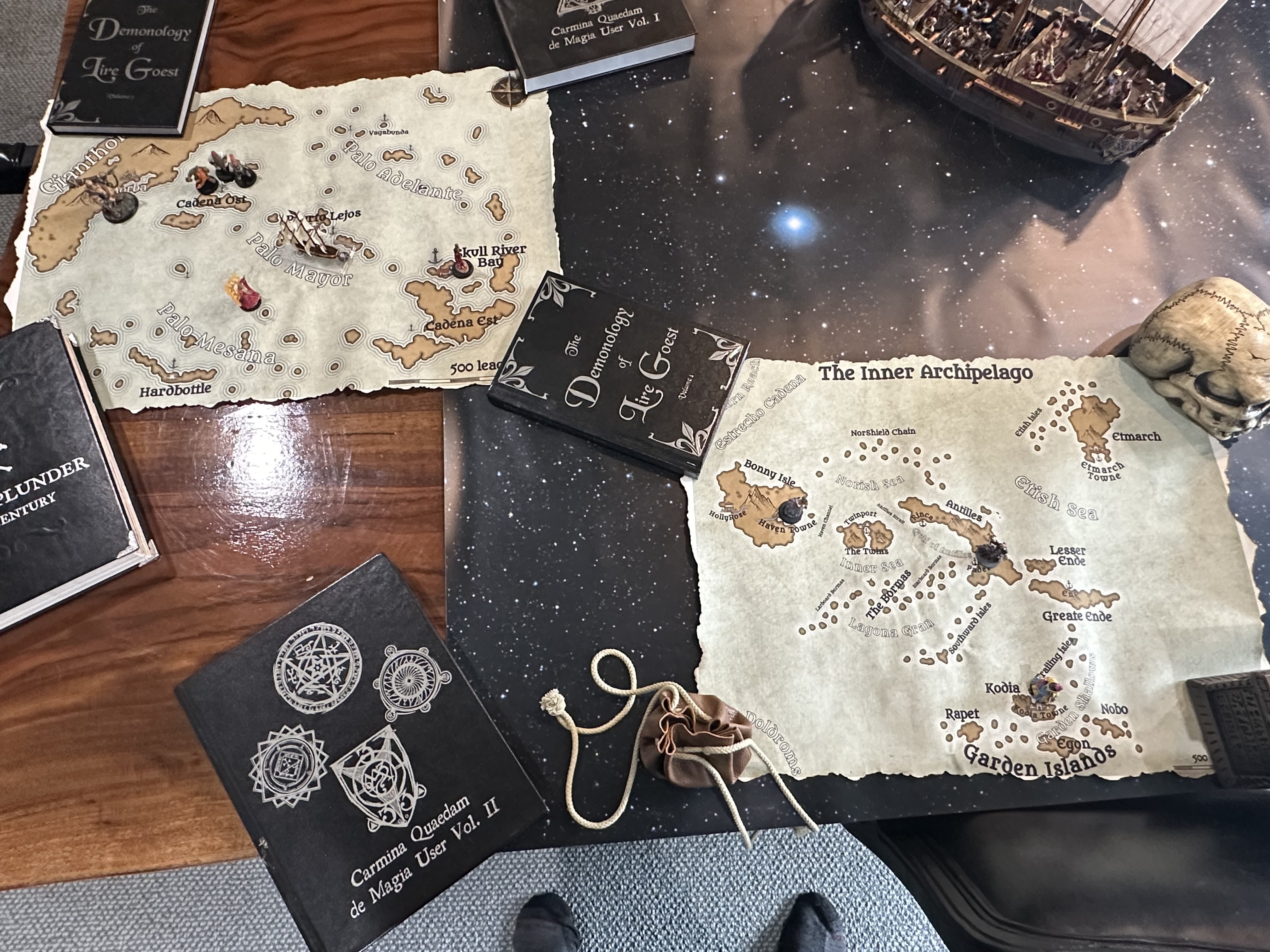- Skull River Bay—There is likely little more to be learned of Black Alice at the pirate town of Skull River Bay. However, before leaving for the West, the heroes commissioned the construction of a Golem, which should be completed by now. There is also an artificer in this town capable of working mithril to make magical cannons; the party now has sufficient mithril to commission them, and fully arm the ship.