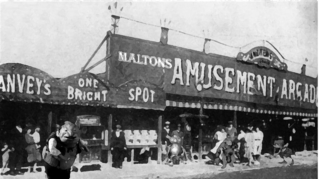 This old arcade offers slum dwellers with a few cents toi spare the cheapest and basest amusements.