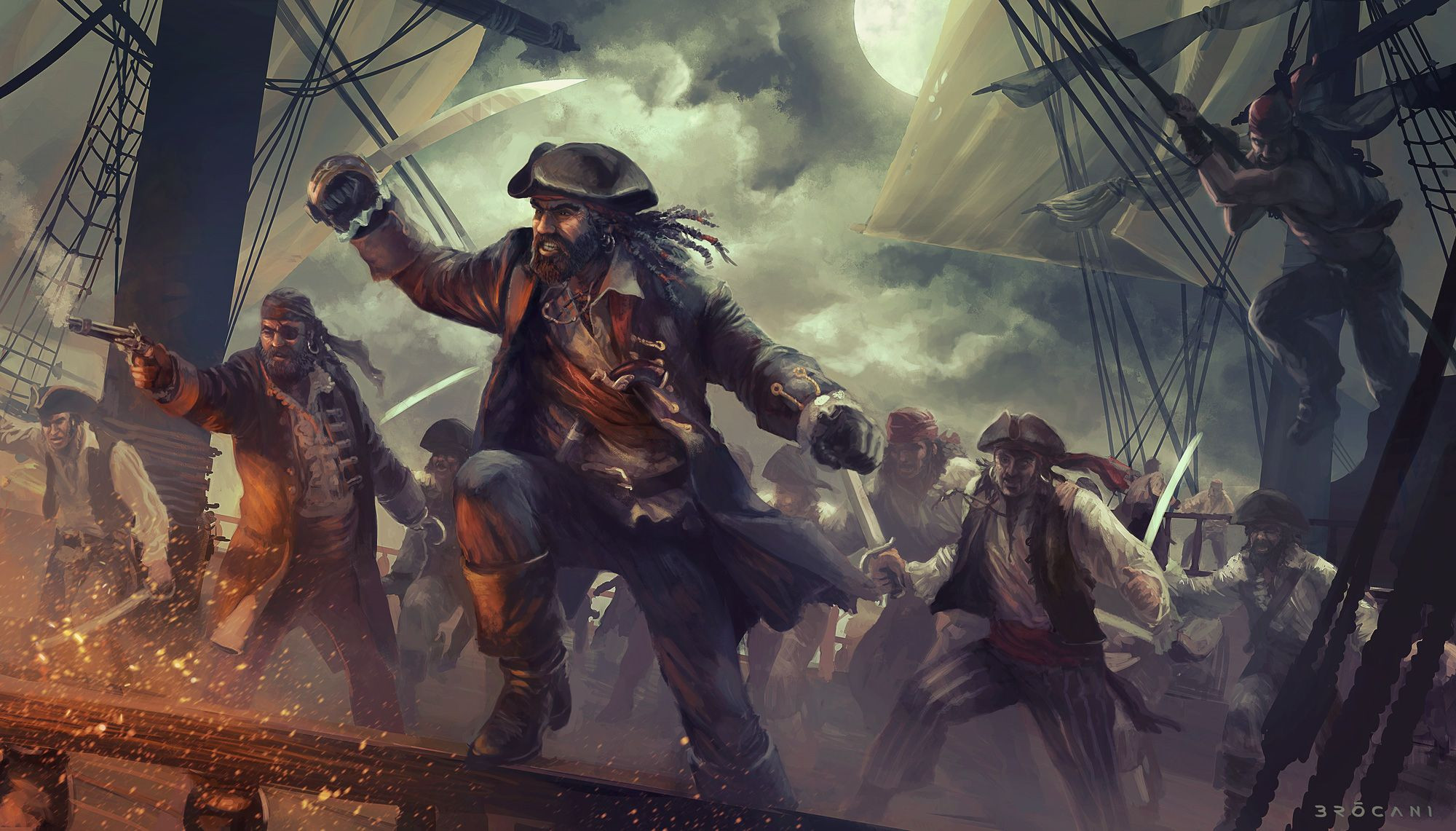 Today, Black Sails is not as big or influential as it was. They have hideouts on all four islands, they have ships and supplies. They still raid massively - any merchant ship that sails the Cyan Ocean, less so the ones that belong to Unity. Збори Єдності // United Gathering is aware of their activities and tries to keep them at bay.