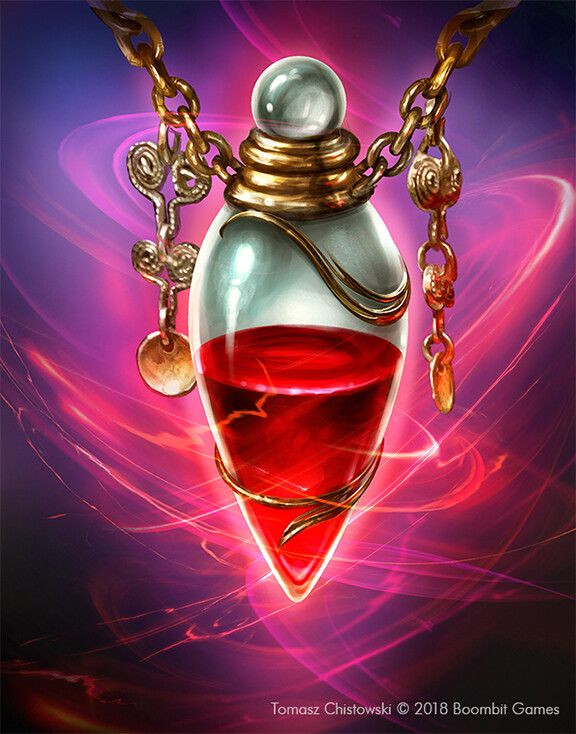 Icon: Potion surrounded by six gemstone drawings.