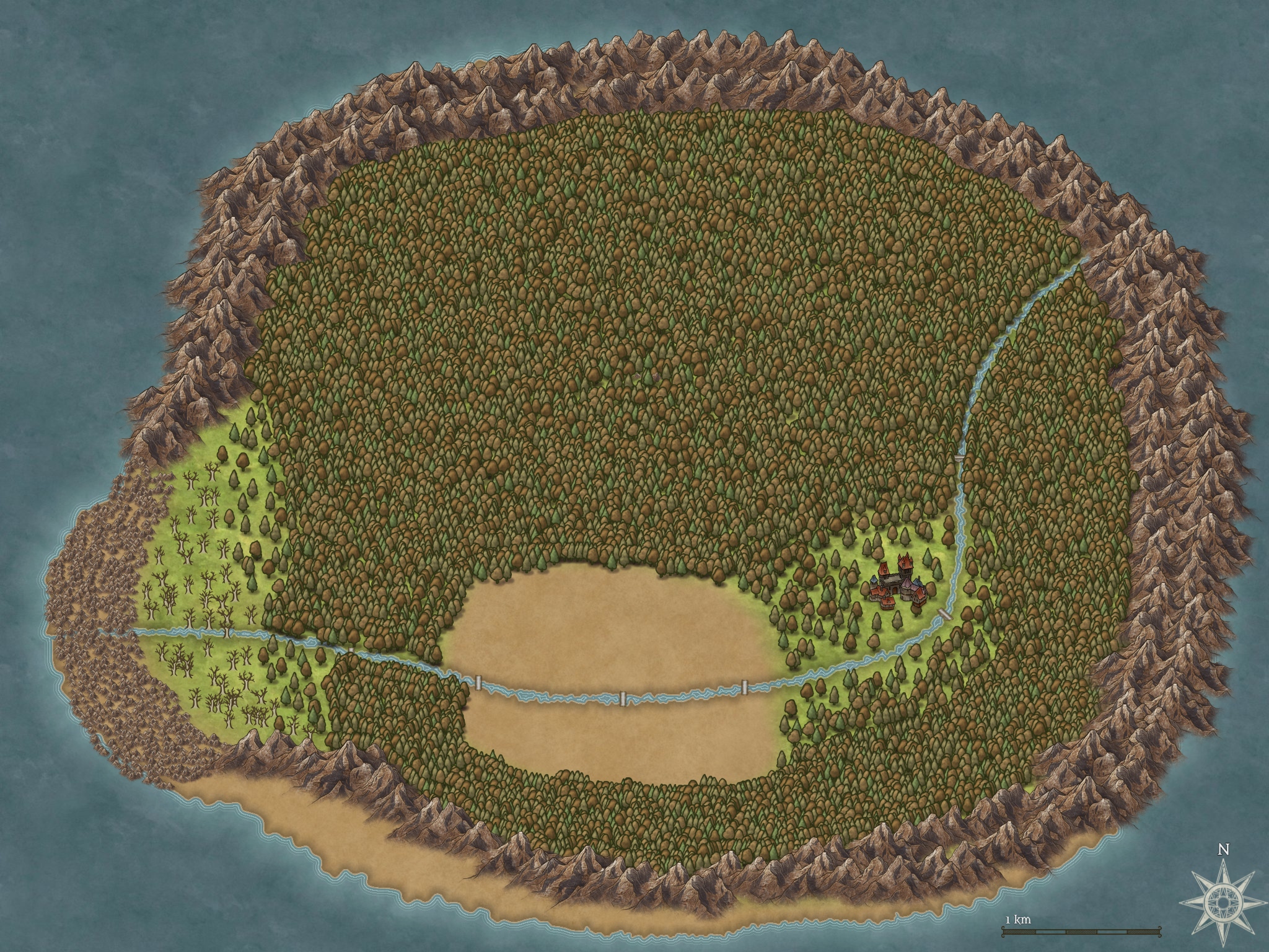 Mapa wyspy nakreślona przez Jarpena. Wymiary rzeczywiste mogą nie być dobrze odwzorowane. Word count: 12
