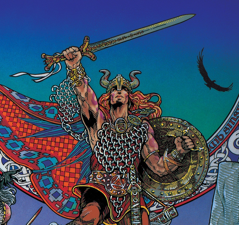 During the Lëó Tráedh Oi Édennëuh (2nd Battle of Édennia), Airmed, Elcmar I, and Fiachra fought together tall in stance.
