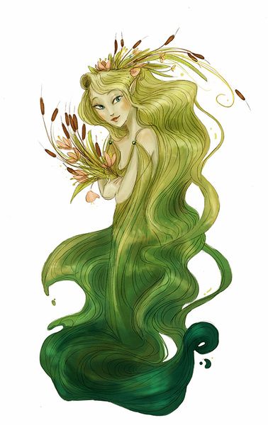 Dryads are associated with the forests and trees. They look like beautiful humans but with rough, bark-like skin that ranges in color from earthy browns and greens to flowery pinks and blues. Of all the nymphs, they have the most trouble adapting to civilization, as they do not cope well with being separated from their birth tree.