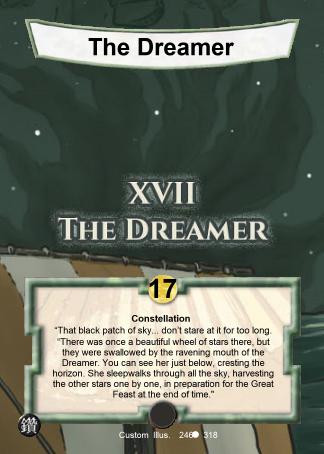 There was once a beautiful wheel of stars there, but they were swallowed by the ravening mouth of the Dreamer. You can see her just below, cresting the horizon. She sleepwalks through all the sky, harvesting the other stars one by one, in preparation for the Great Feast at the end of time.