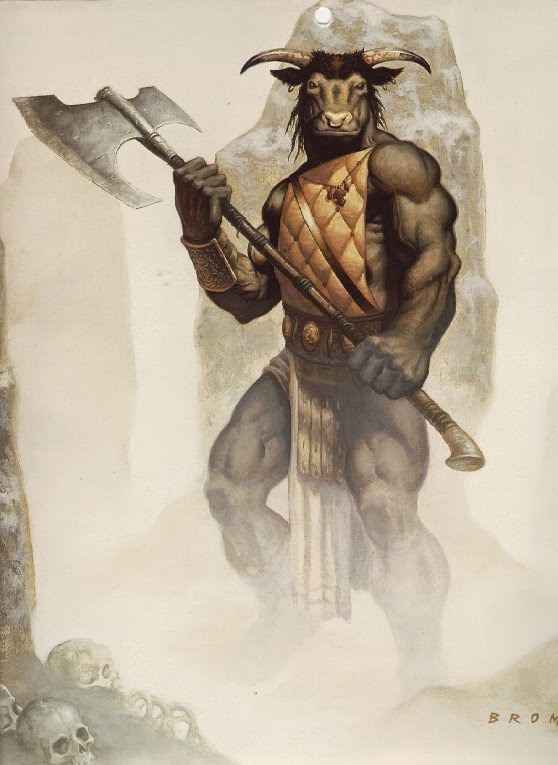 Minotaurs come in two forms, the standard or advanced minotaur (beast legs, human torso, bull head), and the savage bestial minotaurs.