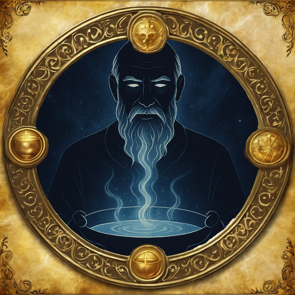 He is sometimes shown carrying a basin of water, his most well-known symbol as it harkens back to the origin of his rituals - the cleansing of the face and hands. Other symbols or tokens of Falmus could include stylised brooms, mops, brushes or buckets.