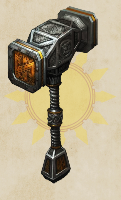 Vista de Pelor: Puedes utilizar una acción para hacer que el martillo se ilumine. Esta luz alcanza unos 10 pies con su mayor intensidad y otros 10 pies iluminando tenuemente. Cualquier criatura no-muerta alcanzada por la luz debe realizar una tirada de salvación de Constitución, en caso de fallar, debe alejarse lo más posible de la luz.