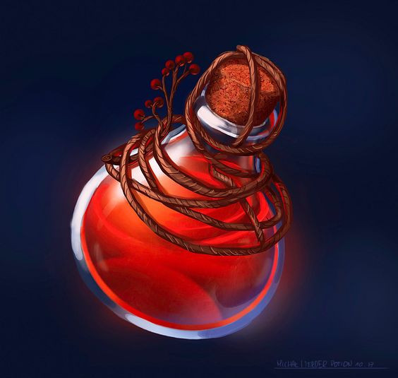 Recuperas 8d4+8 puntos de golpe cuando te bebes esta poción.