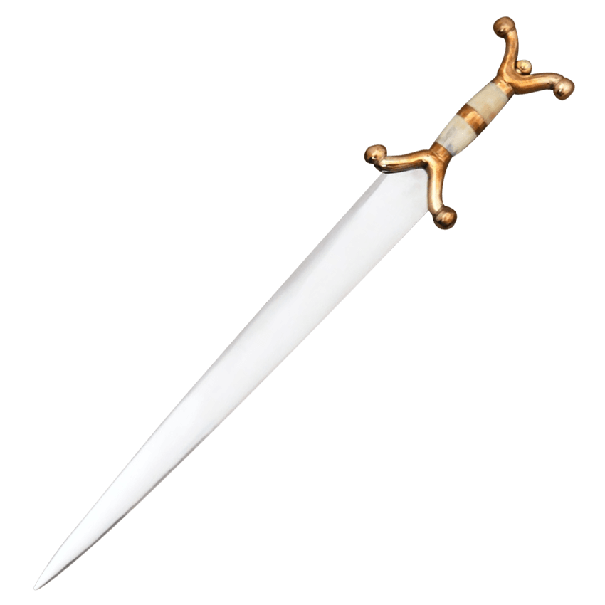 Hermosa espada corta con runas en la hoja y empuñadura dorada. Hace daño equivalente a 1d6+2. Word count: 16
