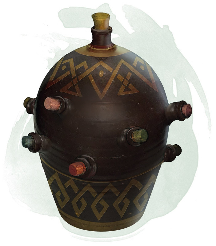 Podes usar una acción y nombrar un liquido de la tabla debajo para causar que el jarrón produzca dicho liquido. Después podes descorchar el jarrón como una acción y verter liquido, hasta 2 galones por minuto. La cantidad máxima de liquido que el jarrón puede producir depende del liquido que hayas nombrado. Una vez que el jarrón empieza produciendo un liquido, no puede producir uno diferente, o mas de uno una vez haya alcanzado su máximo, hasta el amanecer siguiente.