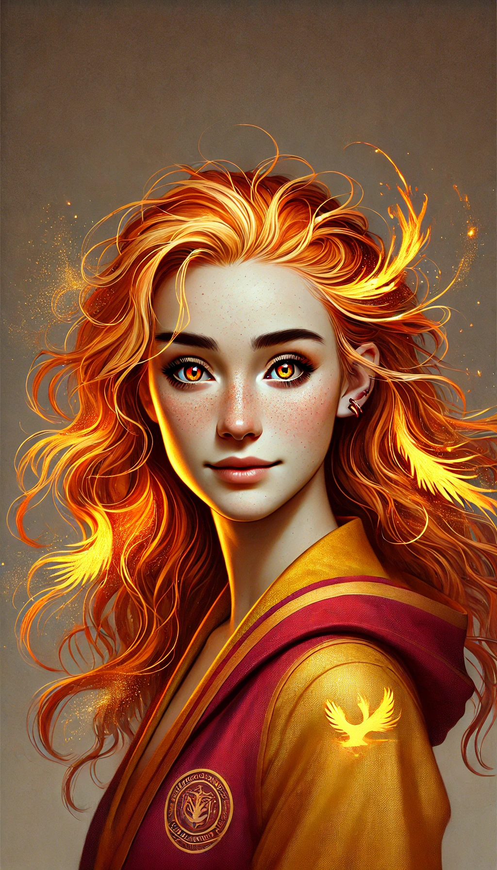 Ihr langes, flammenähnliches Haar strahlt in verschiedenen Rottönen und bewegt sich wie lodernde Flammen, was ihre Verbindung zu den Phönixen betont. Liora trägt oft Kleidung in warmen, leuchtenden Farben, die ihre künstlerische Natur unterstreichen.