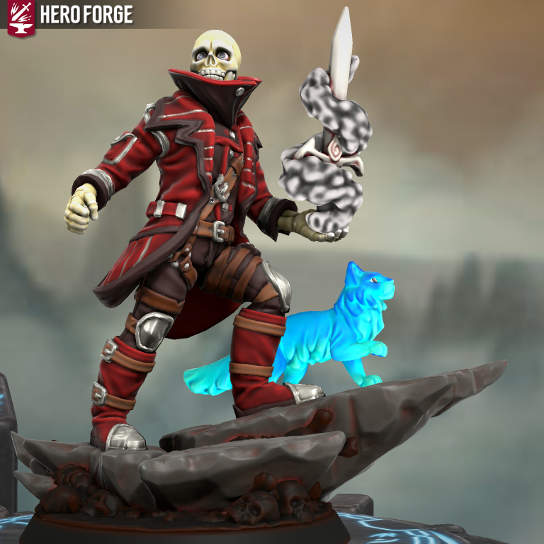 At the conclusion of his ritual, Skodvol's flesh erupted from his body and painted the cavern walls. The mind and soul of the necromancer had ceased to exist. What remained in the bloodstained cave was something else entirely. A skeleton wandered the cavern tunnels. Unlike your typical undead, this one moved with purpose and had the capacity to learn. A few days passed before the skeleton realized it had access to magic. After a bit of practice, the skeleton was able to communicate with the souls of the dead and soon found himself a companion in the caves; A feline ghost wearing a collar and nametag etched *"Zero Two"*. Together, the odd pair eventually found their way to the surface and set out to explore the vast unknown.